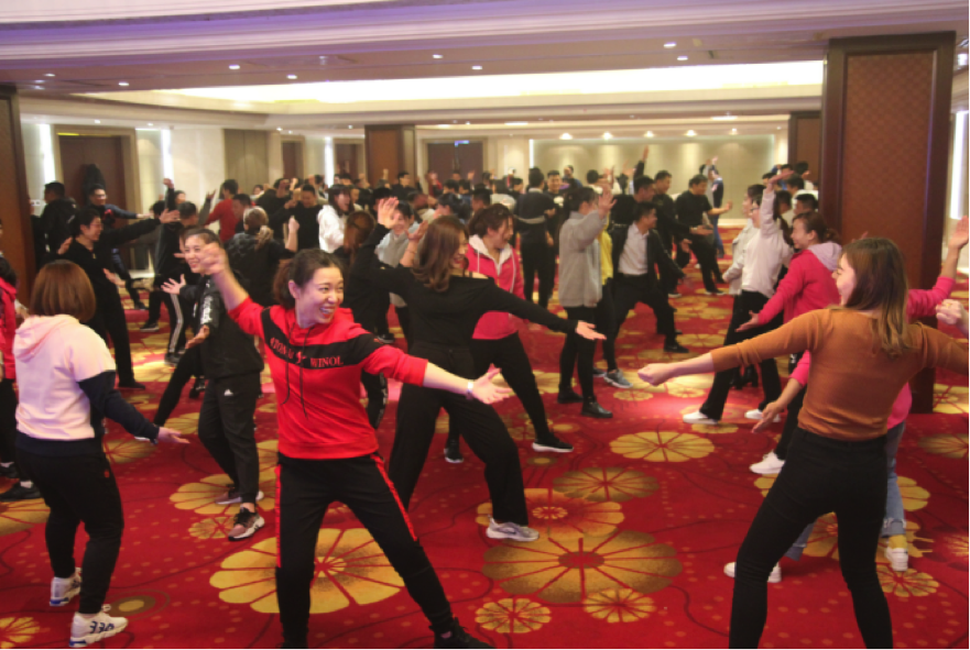 80多人围成一个大圆圈,席地而坐,共同握住一根绳子做画圈运动,可以做多少圈?“100,200,500”,大多数人认为200圈已经是极限了,当队伍中出现一个“2019”声音时,大家都认为这是不可能的。不可思议的是,80多人的团队一起完成了2160圈的动力圈绳运动。